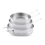 این سرویس شامل سه ست قابلمه در سایز های 16-20-24 میشود که جز اقلام ضروری در آشپزخانه هستند و در اینجا به شکلی متناسب با ویژگیهای محصول طراحی و ساخته شدهاند.